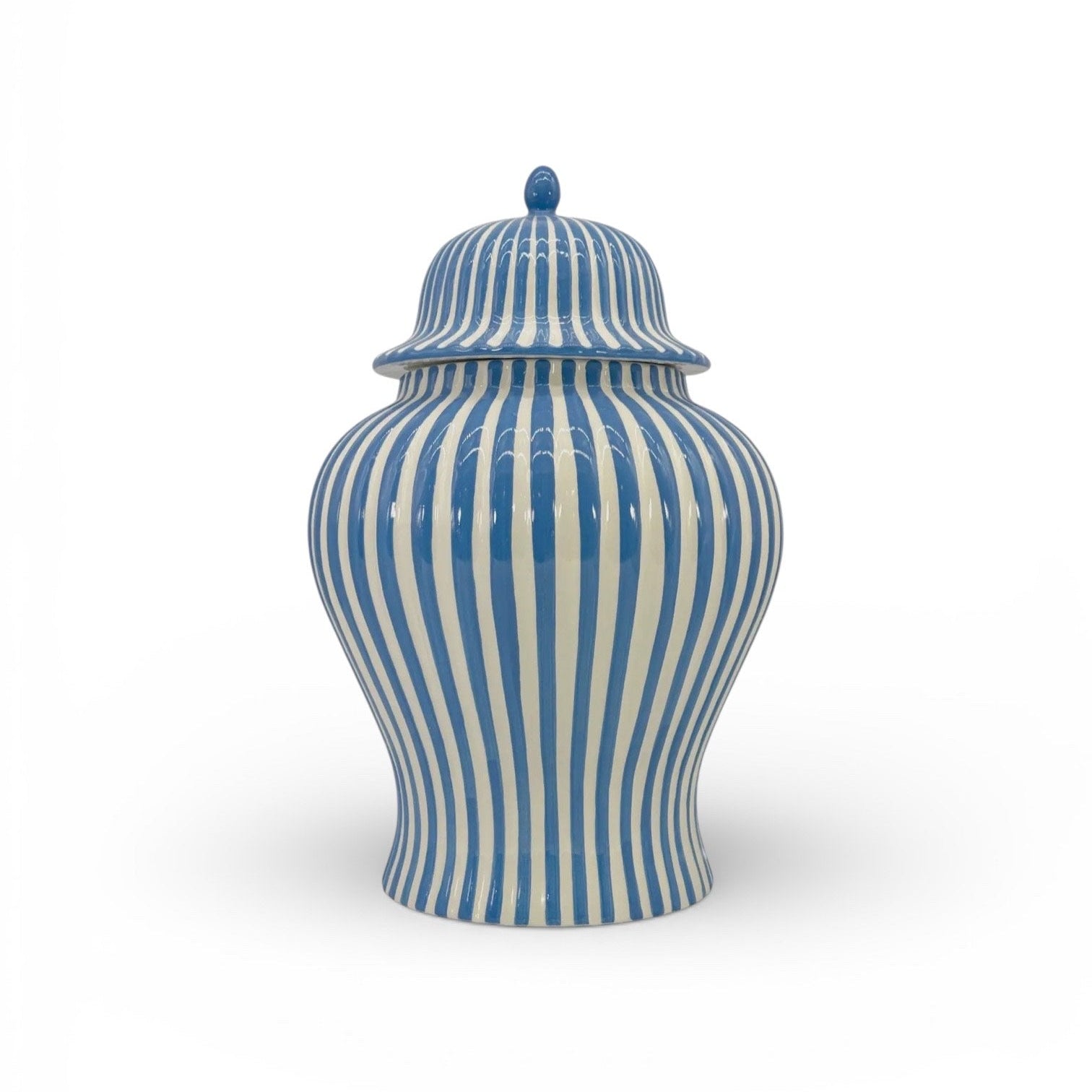 Blue & White Striped Ceramic Jar