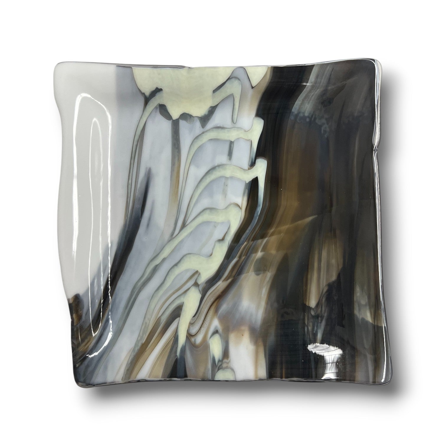Premier fused glass artist, William F Rector, Jr has created this beautiful square grey and white swirl fused glass work of art. This tranquil addition can help to transform a home into a personal sanctuary by creating mood, boosting well-being and making your space feel complete, comfortable, and meaningful. Enjoy!