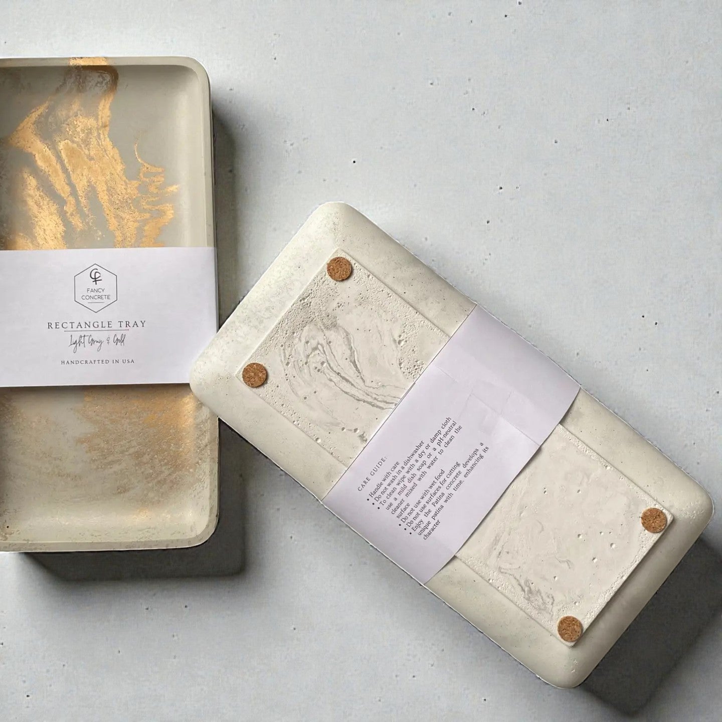 Rectangle Decorative Concrete Tray - Light Gray & Gold